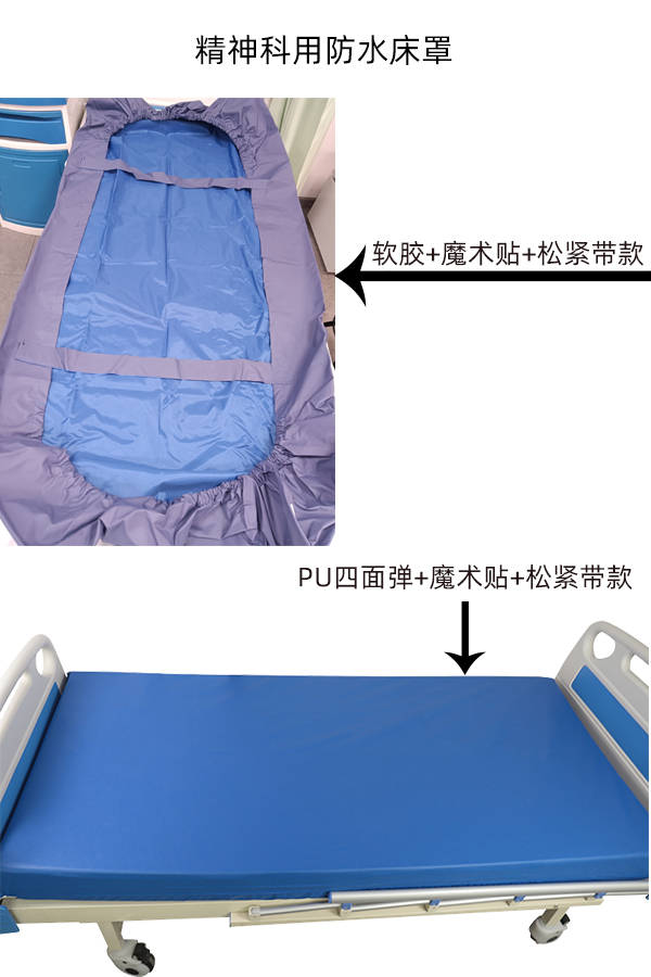 PU四面弹+魔术贴+松紧带款,PU皮面料质感柔软,亲肤不刺激,四面弹设计赋予床罩优异的拉伸性,能适配各类护理床床垫,同时防水防污易清洁,一擦即净,搭配魔术贴与松紧带双重固定,稳固不移位,更适合术后病人护理、急诊重症科室等医疗场景,兼顾舒适与高效。